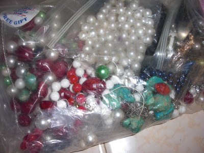 The tutorial I saw originally(can't remember where I saw it or I would post) called for buttons in the middle, but I decided to pull out this bag of my grandma's old beads. I have NO IDEA WHY, but when she passed away 13 years ago, I took a box of broken necklaces, eager to one day restring them & have something from her.